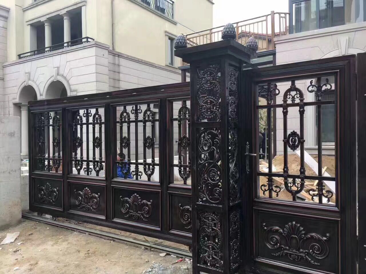 第二種是鋁合金材質(zhì)的藝術(shù)大門,該大門為別墅住宅定制而成,外觀奢華艷麗,使用壽命長(zhǎng)久。